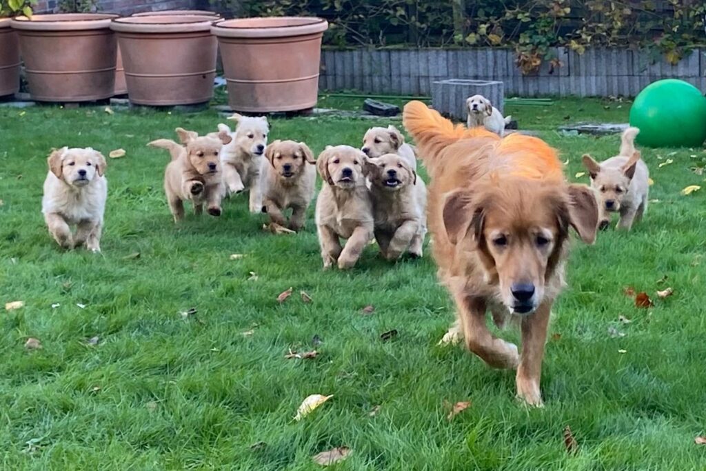 In der Nacht vom 15. auf den 16. September brachte „Kandy aus Aquis-Grana“ neun wunderbare Welpen zur Welt. Es sind fünf Hündinnen und vier Rüden und es geht allen gut! Der glückliche Papa ist „Golden Mountain Spring´s Viking Connor“