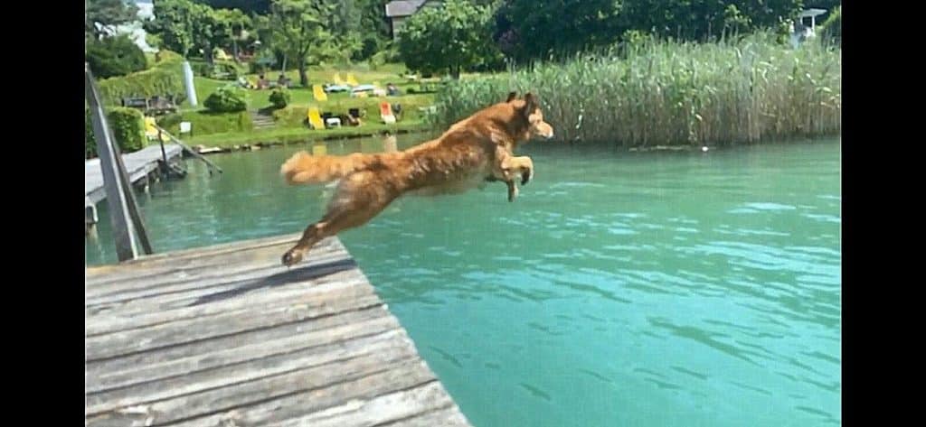 Kandy konnte gar nicht oft genug vom Steg springen, sie hatte einfach Spaß daran!