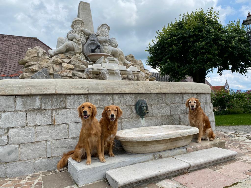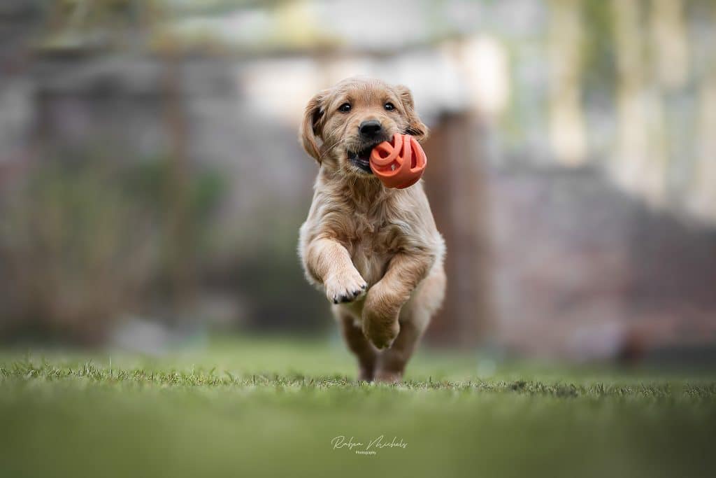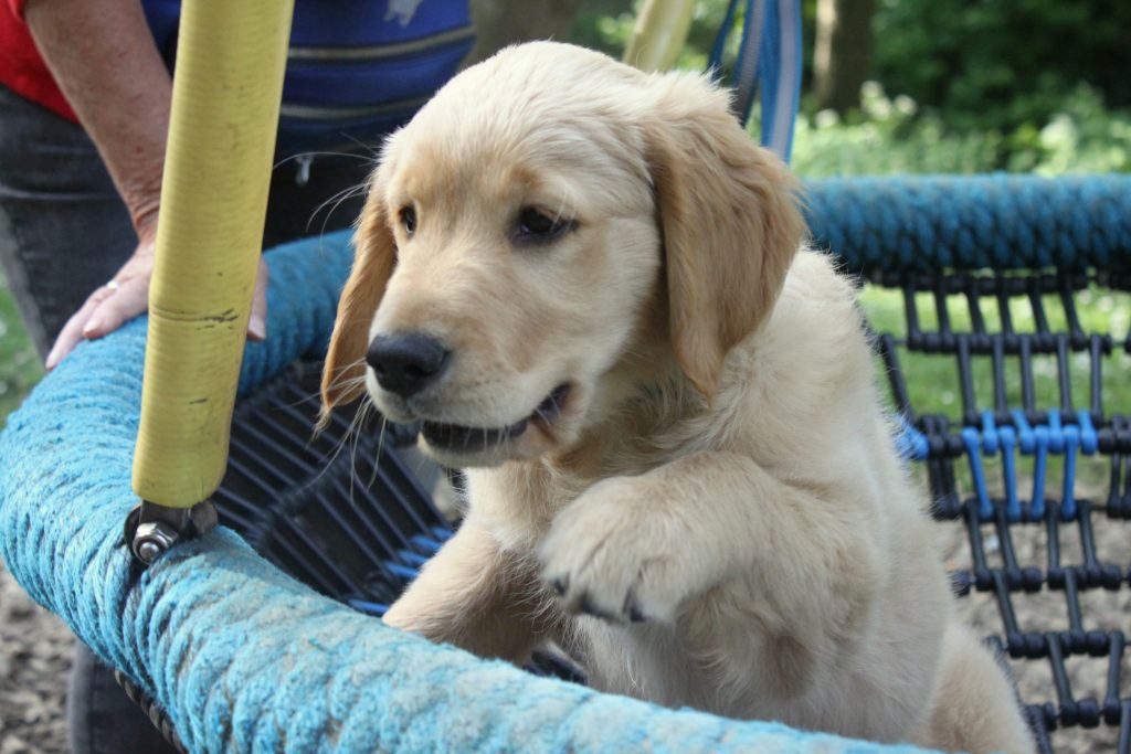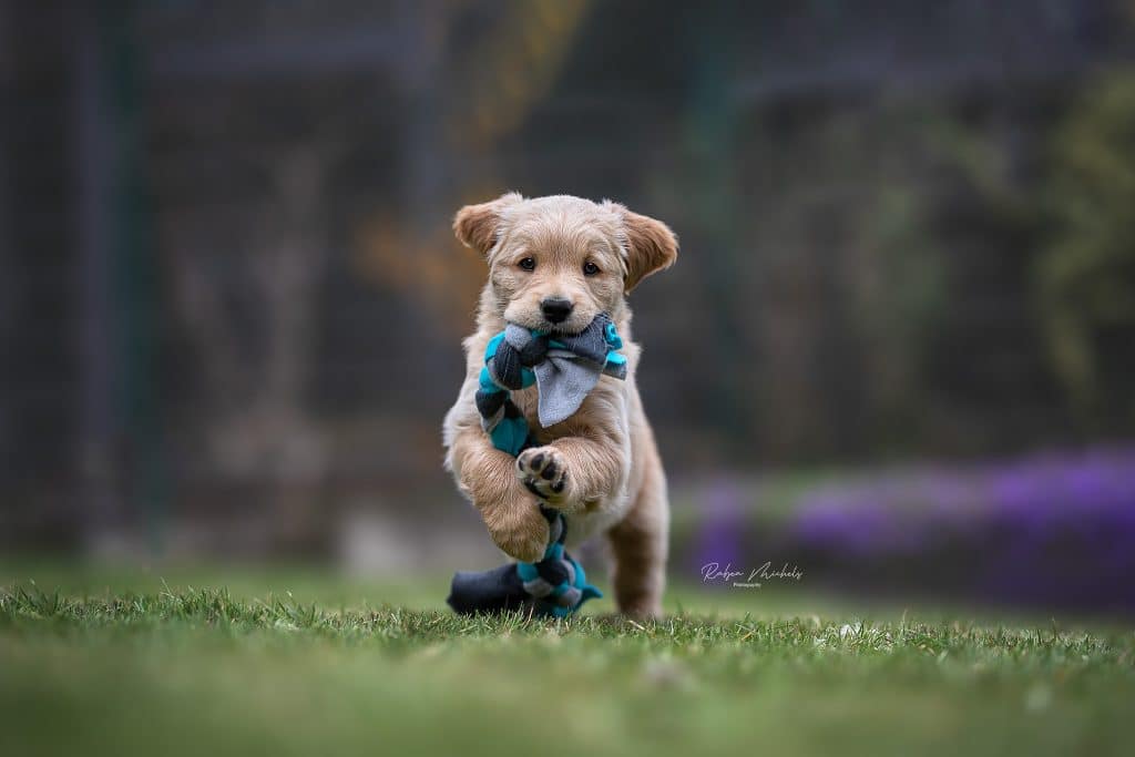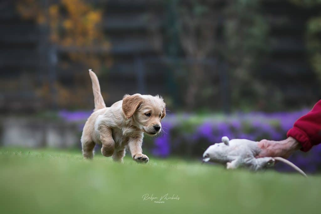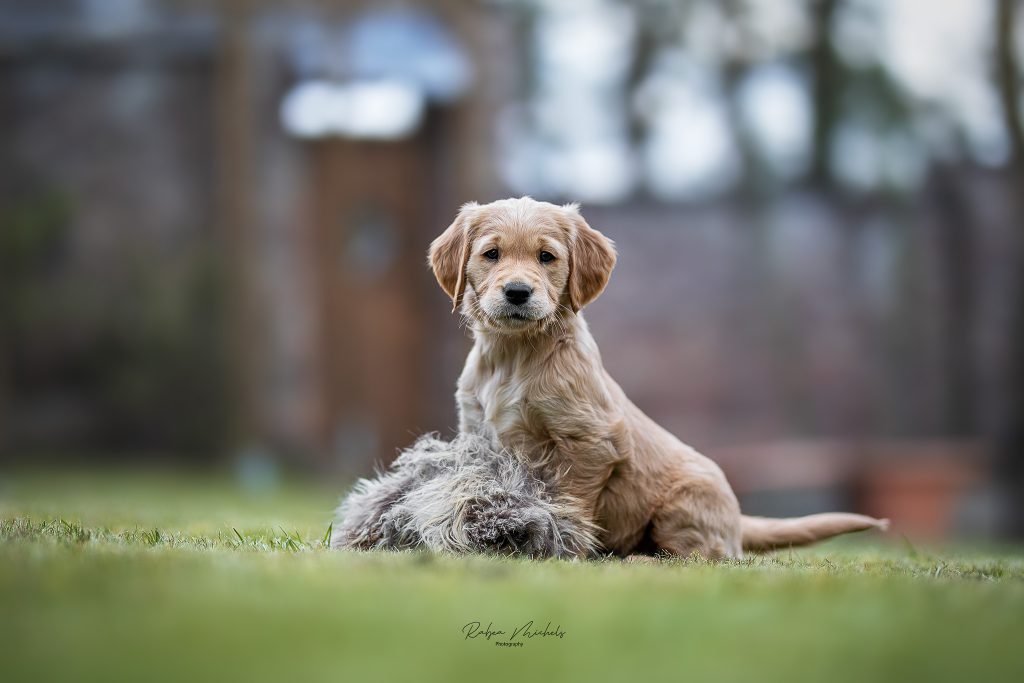 Da wir mit allen Familien, die einen Welpen von uns bekommen, gerade in der ersten Zeit engen Konkakt halten, fiel uns ziemlich schnell auf, dass auch Lutti nicht so angekommen war, wie wir uns das wünschen! So ein kleiner süßer Goldi ist halt nicht nur süß, sondern hält seine Leute ganz schön auf Trab! Die Arbeit und die Zeit, die man in einen temperamentvollen Welpen investieren muss, sollte man nicht unterschätzen! Also wurde auch Lutti zurück geholt und auch er fand Gott sei Dank ganz schnell sein endgültiges perfektes Zuhause!