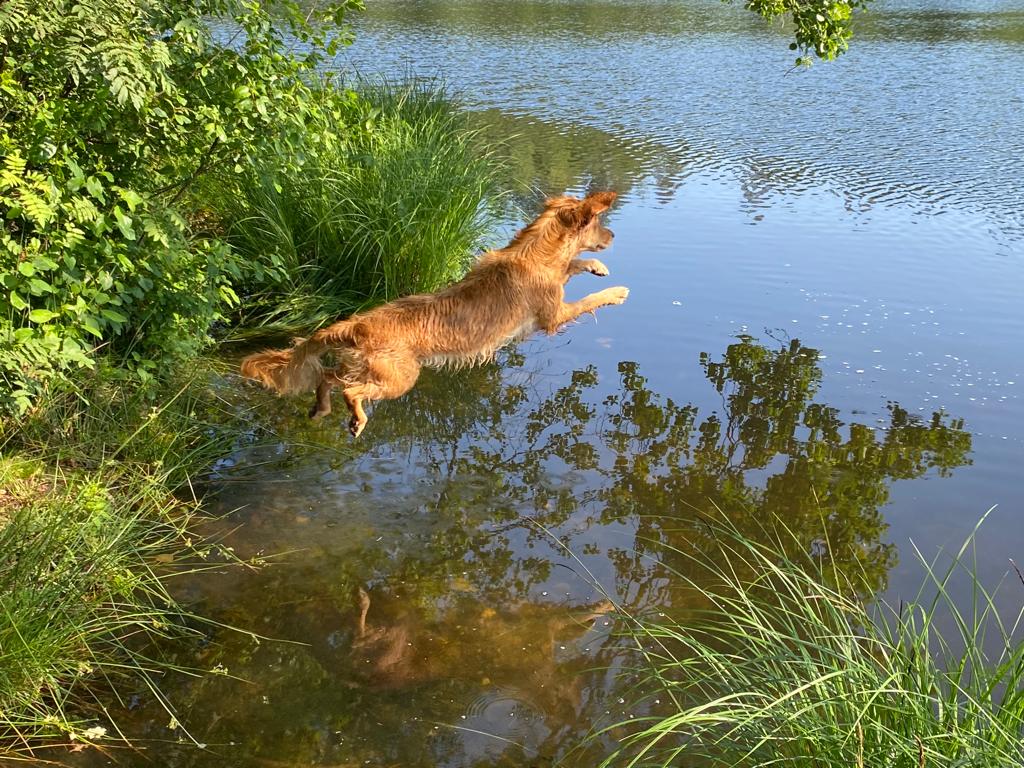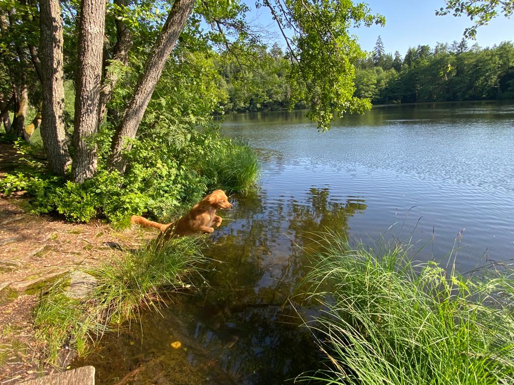 Obwohl wir ja schon ziemlich oft hier waren, entdecken wir doch immer noch neue Gegenden, die es zu erkunden lohnt! Seen, die versteckt im Wald liegen und die zum Schwimmen einladen……….